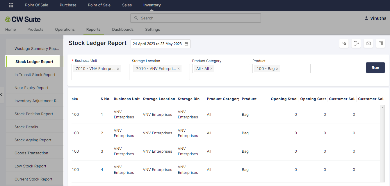 # Stock Ledger Report
