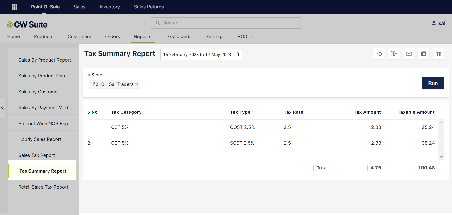 The Tax Summary Report in CW POS provides a summary of taxes collected during a specific period of time. The report includes the following columns: